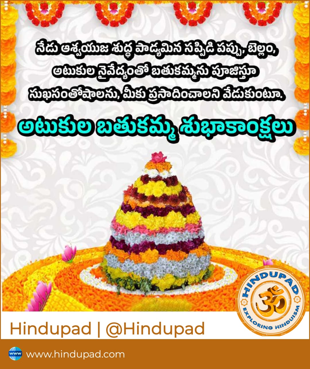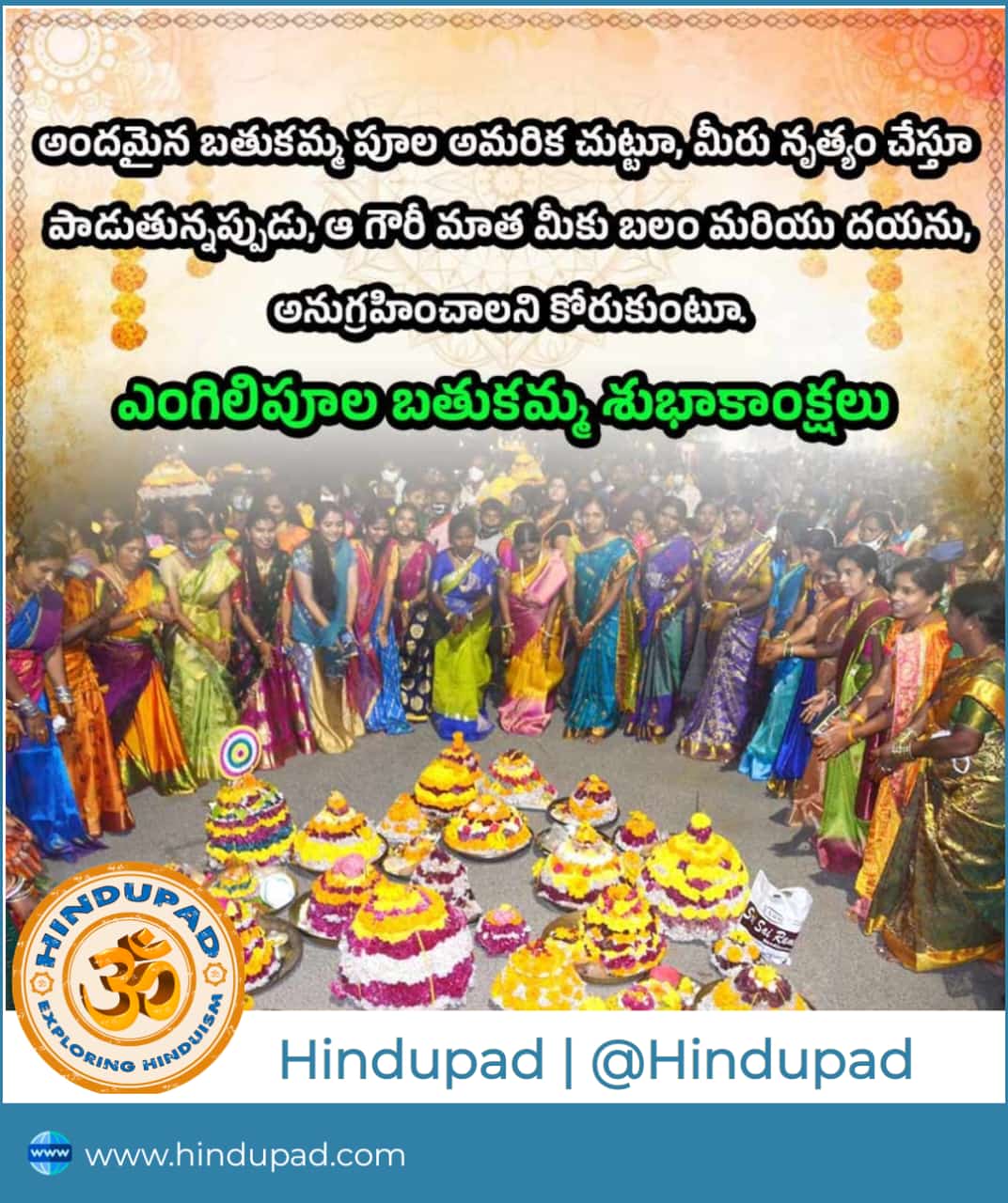 Here are some Bathukamma Wallpapers in Telugu, Bathukamma Wishes in Telugu, Greeting Cards in Telugu.. In 2025, Bathukamma festival begins on September 21 with Bhadrapada Amavasya and ends on September 29|30 with Saddula Bathukamma festival.
