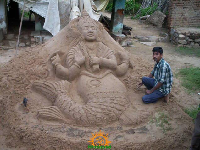 Tarani Misro made sand sculpture of Matsyaavataram for Matsya Jayanti eve. In 2011, Matsya Jayanti date is April 6.